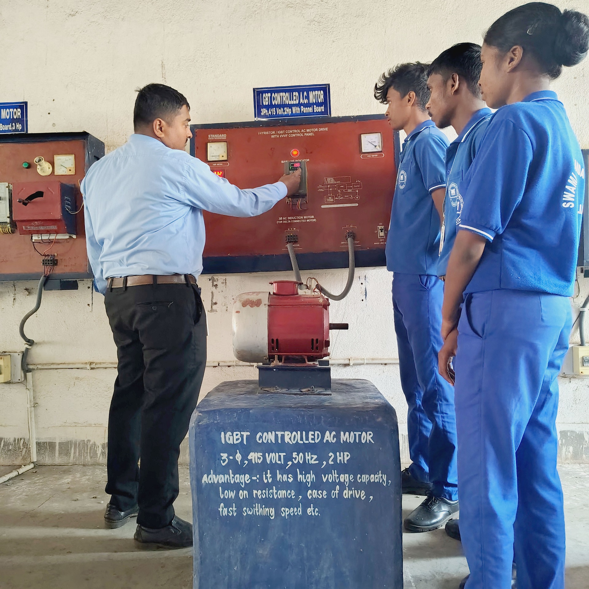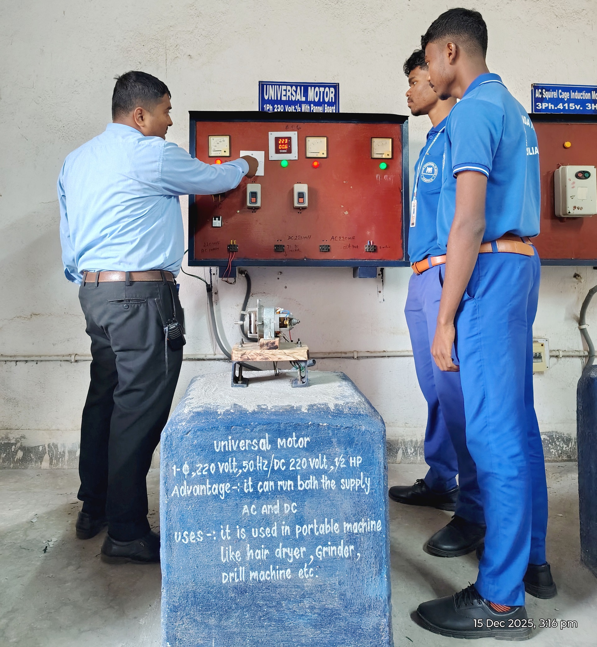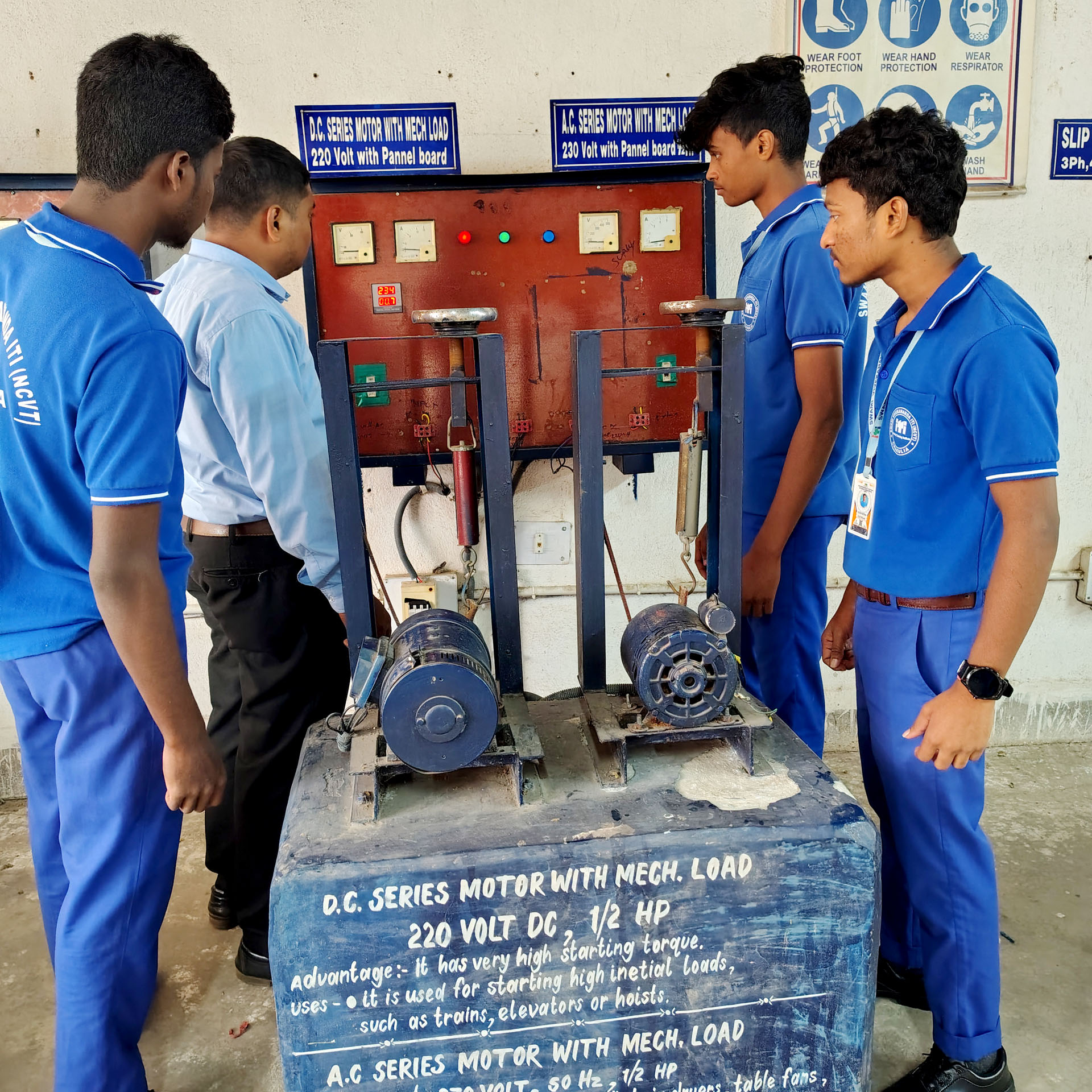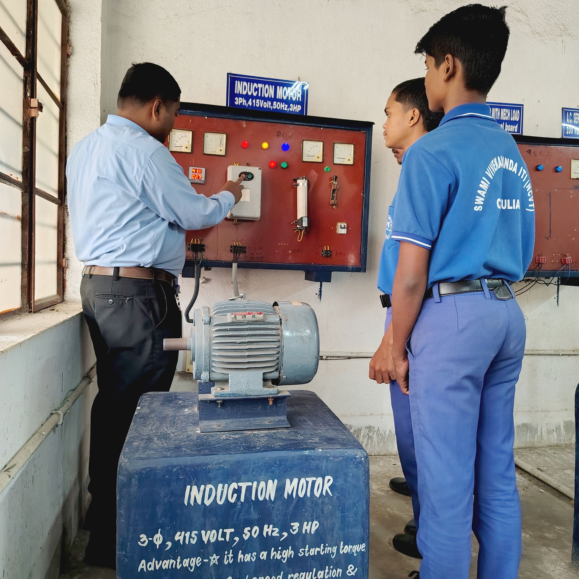 A major strength of the ITI Electrician Trade is its strong focus on practical skill development. Trainees learn various wiring methods such as conduit, surface, and casing-capping wiring, along with reading electrical drawings and using tools and measuring instruments. They gain hands-on experience in AC and DC circuits, electrical calculations, installation and maintenance of motors, transformers, and generators, as well as testing, troubleshooting, and fault-finding techniques. Equal importance is given to electrical safety, earthing systems, fire safety, and first aid practices to ensure safe working habits.