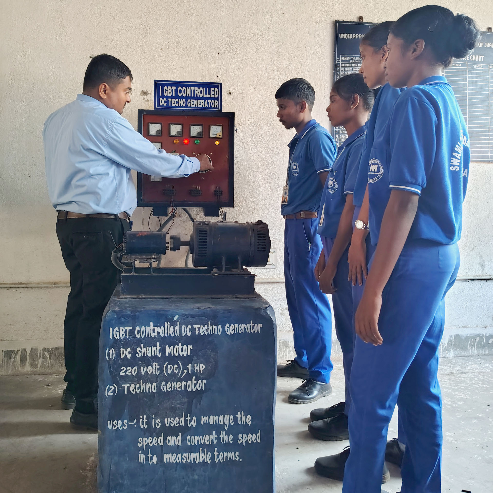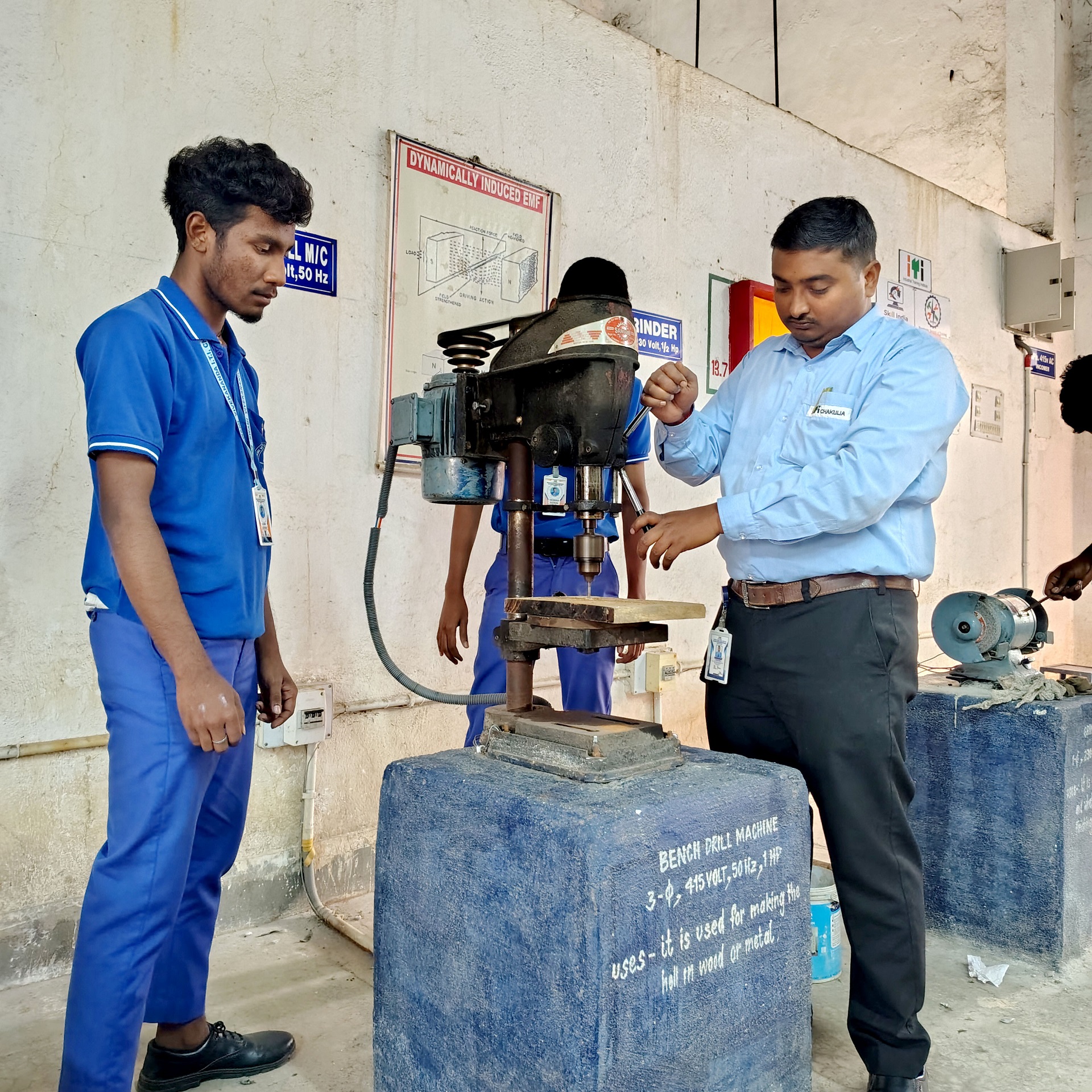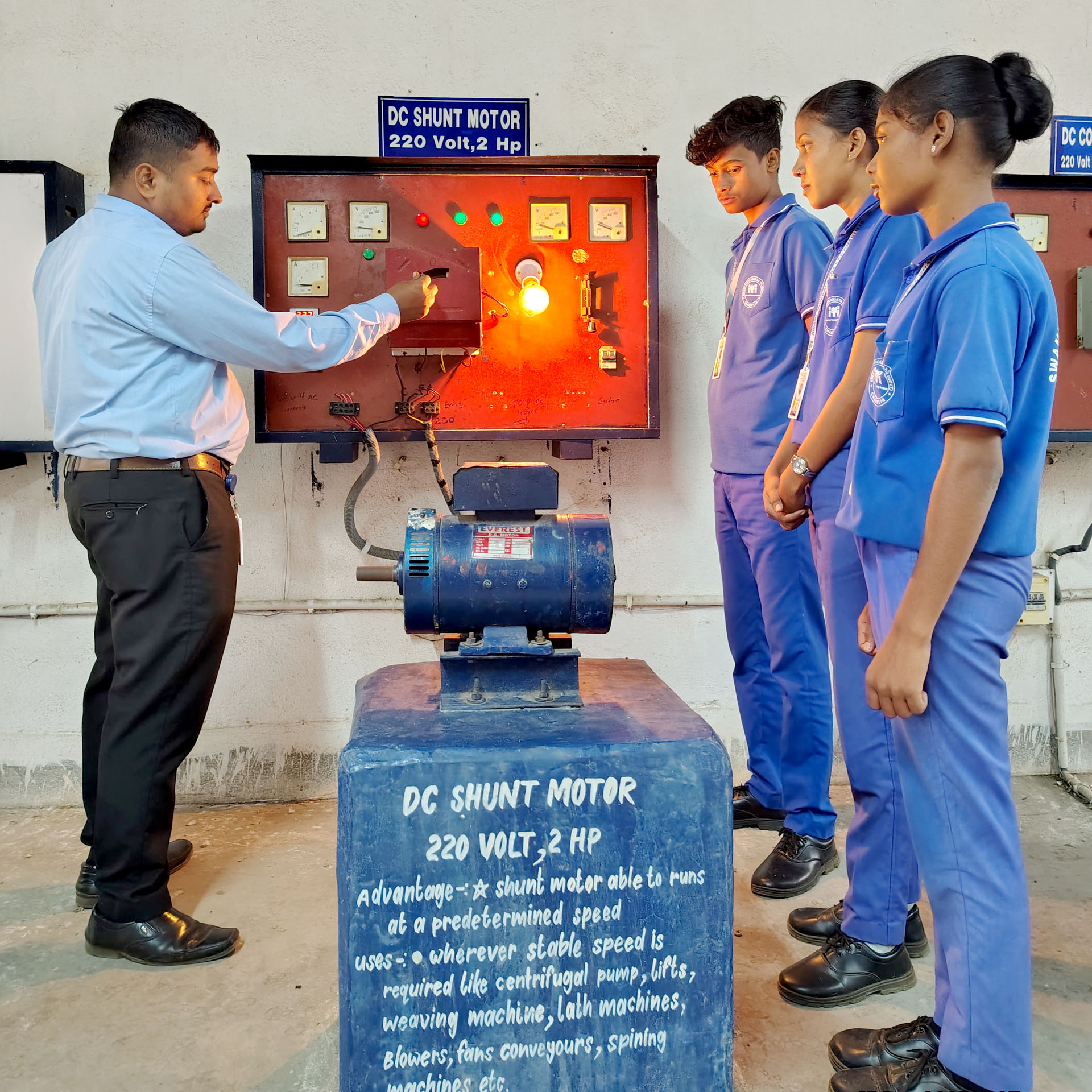 A major strength of the ITI Electrician Trade is its strong focus on practical skill development. Trainees learn various wiring methods such as conduit, surface, and casing-capping wiring, along with reading electrical drawings and using tools and measuring instruments. They gain hands-on experience in AC and DC circuits, electrical calculations, installation and maintenance of motors, transformers, and generators, as well as testing, troubleshooting, and fault-finding techniques. Equal importance is given to electrical safety, earthing systems, fire safety, and first aid practices to ensure safe working habits.